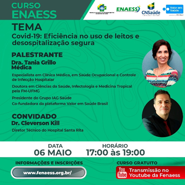 O curso “Covid:19 - Eficiência no Uso de Leitos e Desospitalização Segura” é uma iniciativa da FENAESS - Federação Nacional dos Estabelecimentos de Serviços de Saúde, importante entidade sindical que atualmente representa 21 sindicatos nas regiões centro-oeste, nordeste, norte e sudeste do Brasil.